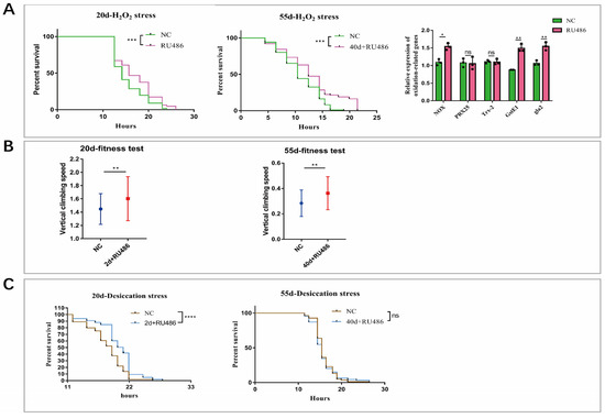 - Xue, R.; Yang, K.; Xiao, F.; Yang, L.; Chen, G.; Li, Y.; Ye, Y.; Chen, K.; Smith, S.T.; Li, G.; et al. dNAGLU Extends Life Span and Promotes Fitness and Stress Resistance in Drosophila. Int. J. Mol. Sci. 2022, 23, 14433. [Google Scholar] [CrossRef]