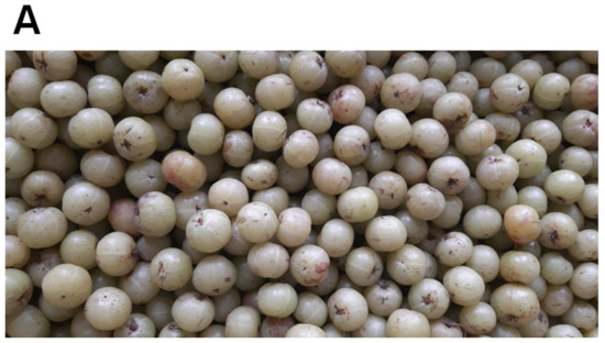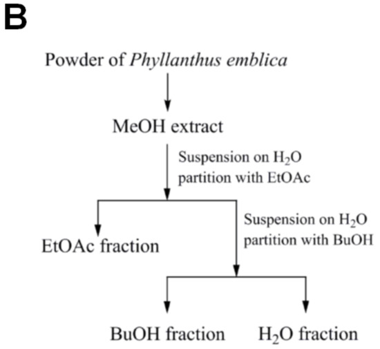 Fruits of Phyllanthus emblica L. (Figure 1A) were purchased from Taiwan Miaoli County, Ogan marketing Cooperation. These fruits were identified by China Medical University, Taiwan, and the voucher specimen (CMPF385) is replaced.