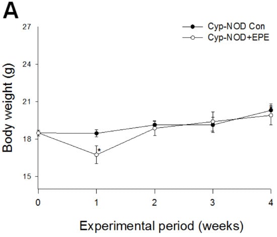 4.4.1. Part I: EPE or Vehicle Administered to S-NOD Mice