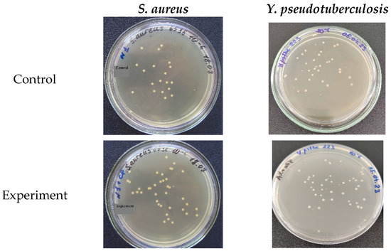 Test cultures included pathogenic Gram-positive and Gram-negative bacterial strains (Collection of Irkutsk Antiplague Research Institute of Siberia and Far East, IARI): Listeria monocytogenes 766, Staphylococcus aureus ATCC 6538-P (FDA 209-P), Yersinia enterocolitica 03 628/1, Yersinia pseudotuberculosis 223, and Yersinia pestis EV. Test strains Staphylococcus and Yersinia were cultivated on Hottinger’s agar (HA) at (28 ± 1) °C for 48 h. Listeria were grown on an HA or Hottinger’s broth with 1% glucose (Himedia, India, pH 7.2) and incubated for 24 h at (37 ± 1) °C.