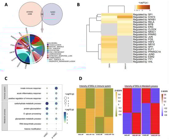 The supporting data of this article can be found within this paper and in supplementary files. The microarray data have been deposited in the NCBI GEO database and are publicly available (Accession number: GSE230618 (hASCs) and GSE230619 (d-hASCs); GSE230618 (https://www.ncbi.nlm.nih.gov/geo/query/acc.cgi?acc=GSE230618, accessed on 26 April 2023). GSE230619 (https://www.ncbi.nlm.nih.gov/geo/query/acc.cgi?acc=GSE230619, accessed on 26 April 2023).