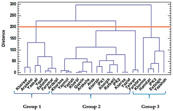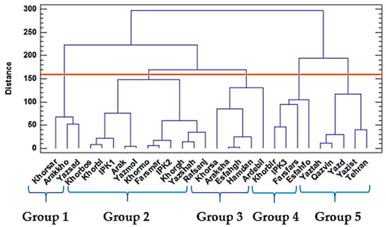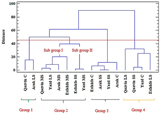 Analysis of variance for traits was performed in the form of a randomized complete block design in three replications using SPSS software, version 20, SAS software, version 9.4, and STATGRAPHICS software, ver. XVII. Means were compared using the least significant difference (LSD) method. To group populations, Ward’s cluster analysis was used based on the square of the Euclidean distance using STATGRAPHICS software, version 16.2.04, and to verify the results of the cluster analysis, PCA analysis was used by STATGRAPHICS software, version 16.2.04. MANOVA was performed to examine the effects of the experimental treatments from a multivariate perspective by SAS software, version 9.4.