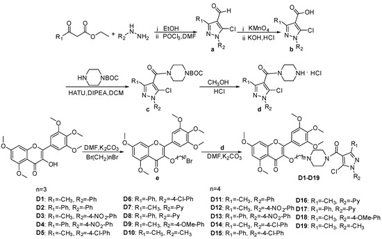 Schematic representation of the synthesis of target compounds D1–D19.