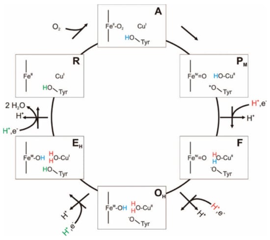 - Wikström, M.; Gennis, R.B.; Rich, P.R. Structures of the intermediates in the catalytic cycle of mitochondrial cytochrome c oxidase. Biochim. Biophys. Acta BBA Bioenerg. 2023, 1864, 148933. [Google Scholar] [CrossRef]