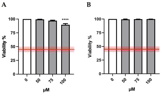 In view of these aspects, TK6 cells were treated with MTTA at different concentrations (0, 50, 75, 100 μM) in the absence or presence of an exogenous source of metabolic activation, S9 mix, for a short-term treatment of 3 h. The treatment was then followed by a recovery time of 23 h in a fresh medium, which is the time needed to allow the cells to complete 1.5–2 cell cycles, necessary to fix and transmit the damage possibly suffered to the daughter cells.