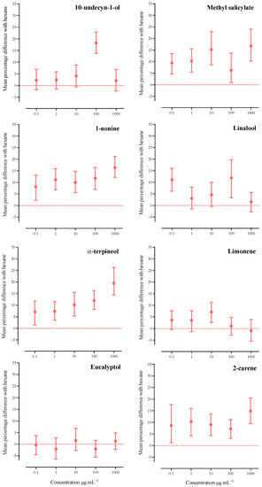 | Methyl salicylate | 17.89 ± 9.37 | 11.44 ± 5.53 |