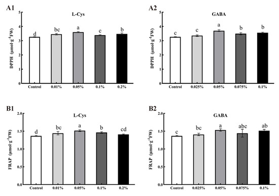 2.6. Effects of L-Cys and GABA on DPPH and FRAP of Loquat Fruit after Harvest