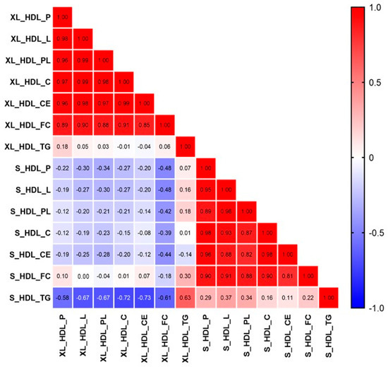 To evaluate the relationship among distinct metabolites, we conducted a correlation analysis on the HDL-associated metabolites in RA patients. As shown in Figure 3, a negative correlation was observed between small-sized and very large-sized HDL-related metabolites.