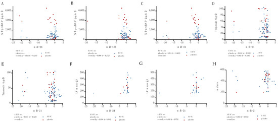 Furthermore, a negative correlation of miR-24 (p = 0.016, r = −0.253, Figure 5A) and miR-126 (p = 0.009, r = −0.272, Figure 5B) with NT-proBNP was observed. In the case of miR-21, this correlation was only observed in placebo patients (p = 0.011, r = −0.485, Figure 5C). miR-24 expression and troponin also showed a negative correlation (p = 0.045, r = −0.186, Figure 5D) whilst, for miR-21, this could again only be observed in placebo patients (p = 0.013, r = −0.428, Figure 5E).