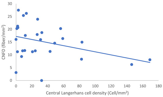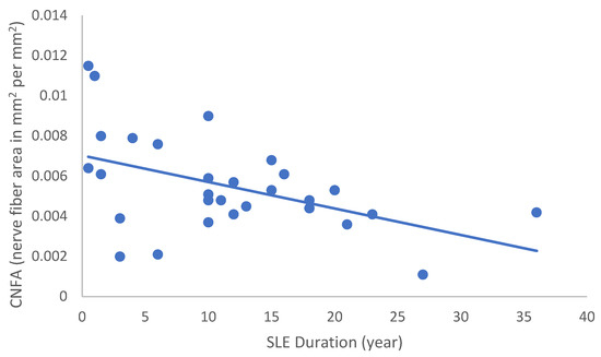 Correlation of CNFL with disease duration (r = −0.399; p = 0.035).