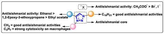 The summarized structure–activity relationship of antileishmanial 1,2,3-triazolium.