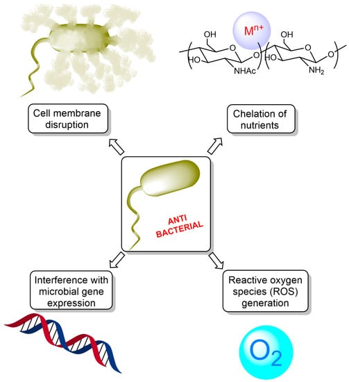 - Yilmaz Atay, H. Antibacterial Activity of Chitosan-Based Systems. In Functional Chitosan: Drug Delivery and Biomedical Applications; Jana, S., Jana, S., Eds.; Springer: Singapore, 2019; pp. 457–489. [Google Scholar]