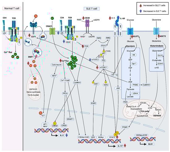 - Koga, T.; Hedrich, C.M.; Mizui, M.; Yoshida, N.; Otomo, K.; Lieberman, L.A.; Rauen, T.; Crispín, J.C.; Tsokos, G.C. CaMK4-dependent activation of AKT/mTOR and CREM-α underlies autoimmunity-associated Th17 imbalance. J. Clin. Investig. 2014, 124, 2234–2245. [Google Scholar] [CrossRef]
