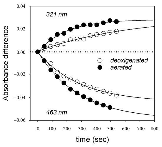 by about 2- and 5-fold, respectively, with respect to those in argon-saturated solutions, without appreciable bleaching.