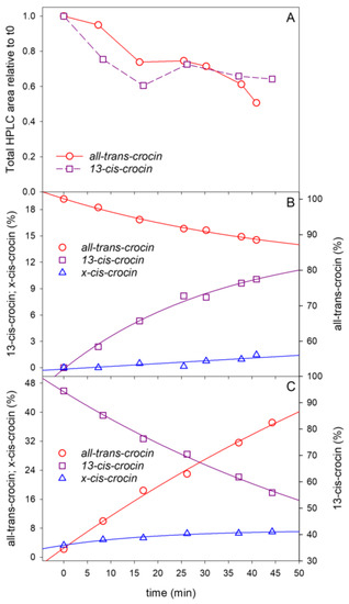 No data about the quantum yield for photoisomerization of crocinoids are reported in the literature. However, Craw and Lambert [