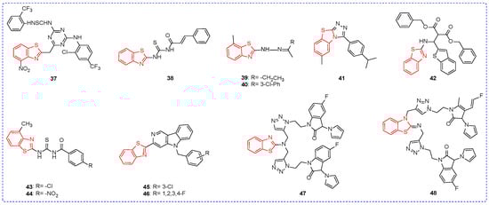 Chemical structures of benzothiazole fungicidal active compounds 37–48.