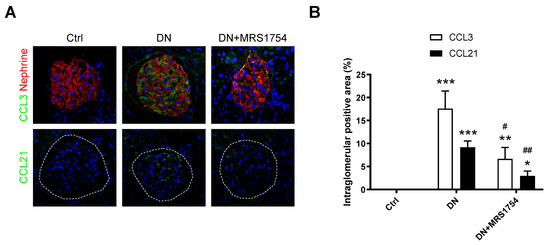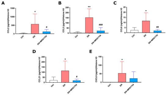 2.2. MRS1754 In Vivo Treatment Decreases the Expression and Secretion of Chemoattractants/Chemokines for Immune Cells in Rats with Diabetic Nephropathy