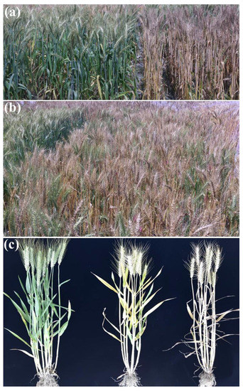 Bread wheat originated from allopolyploidization between the tetraploid (T. turgidum, AABB, 2n = 4x = 28) and the diploid (Aegilops tauschii, DD, 2n = 2x = 28) approximately 10,000 years ago in the Fertile Crescent. Since that time [6,7,8], intensive selection by early farmers and deliberate breeding have resulted in adaptation to a wider range of environments than occupied by any other crop species [9]. Consequently, genetic diversity is substantially reduced compared with ancestral populations, indicating a major diversity bottleneck in the transition to cultivated lines [10]. Synthetic hexaploid wheat (SHW) is an artificially created hexaploid wheat and a useful genetic resource that should be utilized to transfer needed genes from tetraploid or diploid donors, including wild species, to improve the performance of common wheat [11]. SHW has been confirmed to have better performance under biotic and abiotic stresses, as well as better yield potential, such as high grain weight and spikelet number and larger kernels and spikes [12,13,14].