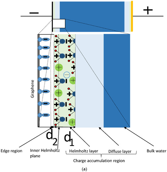 - Sharma, P.; Mišković, Z.L. Capacitance of graphene in aqueous electrolytes: The effects of dielectric saturation of water and finite size of ions. Phys. Rev. B 2014, 90, 125415. [Google Scholar] [CrossRef]