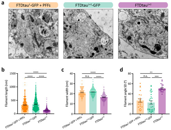2.3. FTDtau1+2-GFP and FTDtau1+2 Result in Different Filament Ultrastructure in Neurons