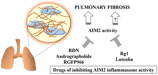 - Cho, S.J.; Lee, M.; Stout-Delgado, H.W.; Moon, J.S. DROSHA-Dependent miRNA and AIM2 Inflammasome Activation in Idiopathic Pulmonary Fibrosis. Int. J. Mol. Sci. 2020, 21, 1668. [Google Scholar] [CrossRef]