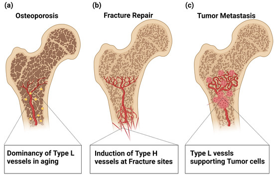 Alterations in vascular growth cause compromised bone healing, osteonecrosis, osteoporosis, and nonunion fractures [