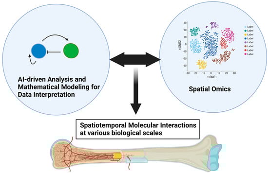 Advances in spatial omics and mathematical modeling as data interpretation for further unveiling skeletal–vascular interactions. Advances in spatial omics technologies will enable us to dissect various biological events into molecular interactions at resolutions of single cells, larger-scale tissue, and the organ level in a more spatiotemporally comprehensive manner. Mathematical modeling, such as that using Turing’s model, may aid in interpreting increasingly large data sets of molecular information at various biological scales.