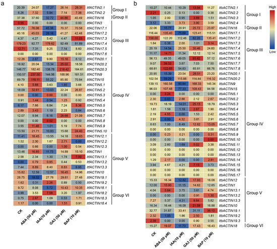 - Guo, J.; Chen, Q.; Ji, Q.; Zhang, L.; Wang, J. Genome-wide analysis of ACTIN families in Arabidopsis Thaliana, Oryza Sativa and Populus trichocarpa. J. Shanghai Univ. 2009, 15, 426–431. [Google Scholar]