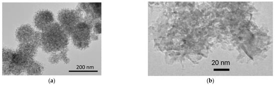 High-resolution electron microscopy image of nanocrystalline MgO used as an additive in the composites under study is shown in Figure 2. It is seen that the sample consists of nanoparticles with a broad size distribution in the range 3–10 nm that agrees with the values estimated from X-ray diffraction peak broadening and the specific surface area. The nanoparticles form a large spherical aggregate 100–200 nm in size.