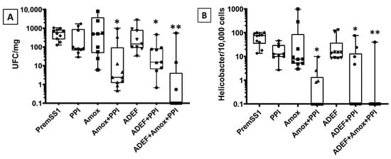 - (n = 10): mice infected with PremSS1 + PPI + ADEF + Amox