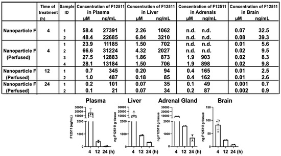 2.1. F12511 Is Present in the Brain after Single IV Injection of Nanoparticle F