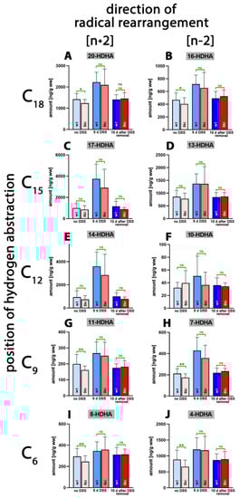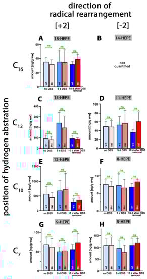 - Rohwer, N.; Chiu, C.; Huang, D.; Smyl, C.; Rothe, M.; Rund, K.M.; Schebb, N.H.; Kühn, H.; Weylandt, K. Omega-3 fatty acids protect from colitis via an Alox15-derived eicosanoid. FASEB J. 2021, 35, e21491. [Google Scholar] [CrossRef]