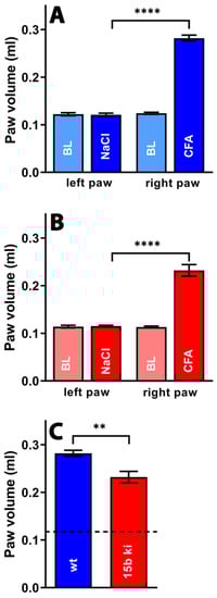 2.4. Alox15-Knock-in Mice Show Reduced Paw Swelling in the CFA-Induced Paw Inflammation Model