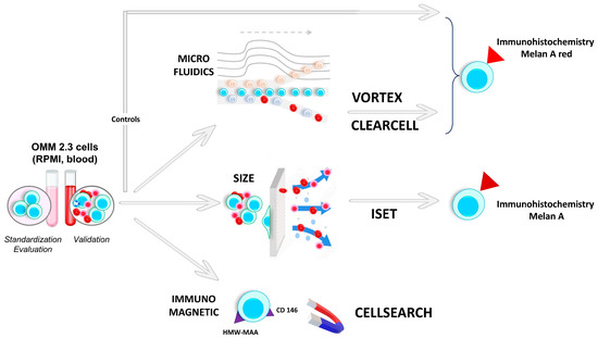 - Mazzini, C.; Pinzani, P.; Salvianti, F.; Scatena, C.; Paglierani, M.; Ucci, F.; Pazzagli, M.; Massi, D. Circulating tumor cells detection and counting in uveal melanomas by a filtration-based method. Cancers 2014, 6, 323–332. [Google Scholar] [CrossRef]