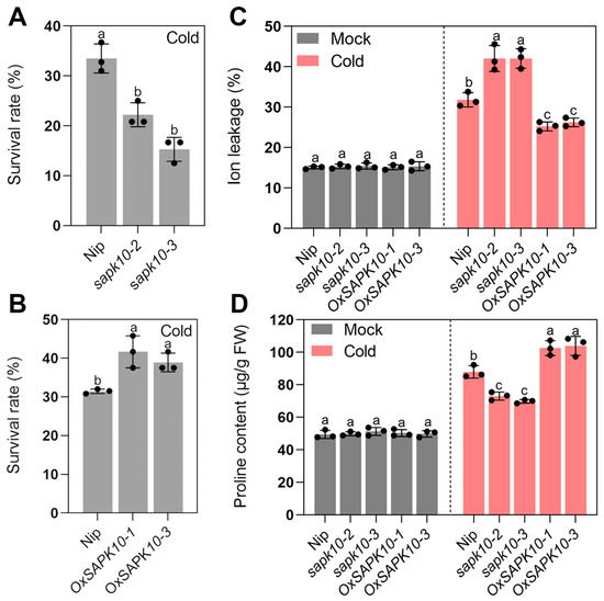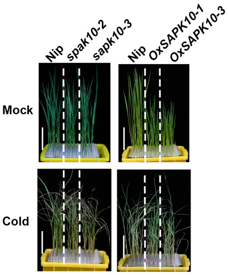 2.3. Disruption of SAPK10 Impairs Rice Chilling Tolerance