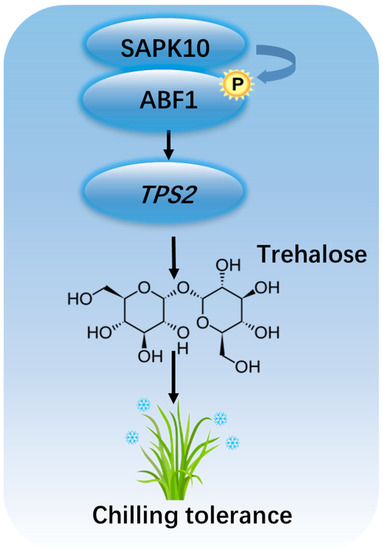 Shu, Y.; Zhang, W.; Tang, L.; Li, Z.; Liu, X.; Liu, X.; Liu, W.; Li, G.; Ying, J.; Huang, J.; et al. ABF1 Positively Regulates Rice Chilling Tolerance via Inducing Trehalose Biosynthesis. Int. J. Mol. Sci. 2023, 24, 11082. https://doi.org/10.3390/ijms241311082