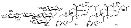 Chemical structure of acetylated derivatives 7a and 7b of djakonovioside B4 (7).