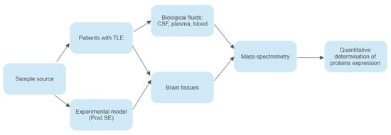 Proteomic analysis of biological fluids of patients with TLE is based on the study of blood plasma, serum, or cerebrospinal fluid (CSF). To date, there are few studies focusing on the analysis of circulating proteins, as compared to tissue proteomic analysis, and CSF testing can reveal the molecular and biochemical changes that occur in the brain in the presence of a neurodegenerative disease. However, obtaining CSF is an invasive procedure—involving a lumbar puncture—requiring a doctor’s prescription. Blood plasma is a more convenient and simple sample to study because the collection procedure is less invasive, less time-consuming, and more routine [].