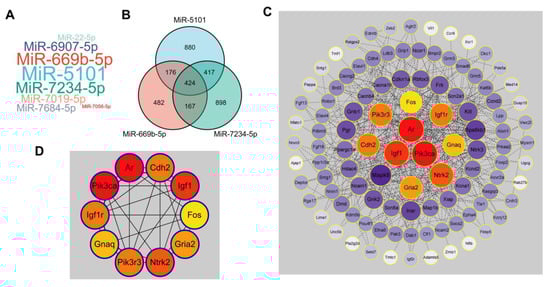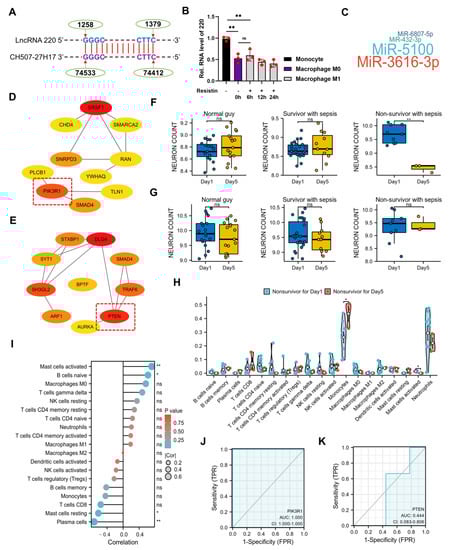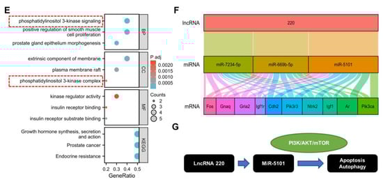 4.2.2. Identification of lncRNA 220 and Construction of an Interactive Network between lncRNA–miRNA–mRNA
