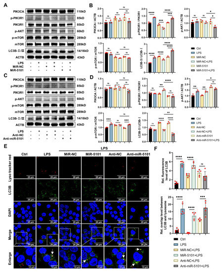 2.4. Regulation of miRNA 5101 on LPS-Induced Autophagy in Kupffer Cells via the PI3K/AKT/mTOR Axis