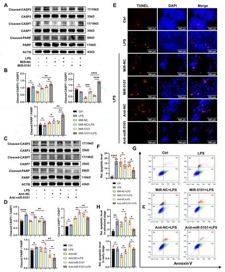 2.5. Regulation of miRNA 5101 on LPS-Induced Apoptosis in Kupffer Cells via the PI3K/AKT/mTOR Axis