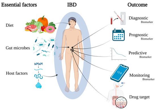 Therefore, this review synthesises state-of-the-art research addressing the unmet needs for rational management of IBD. Thus, biomarkers reflecting interactions between diet, gut microbes and the patient immune system, essential factors for IBD initiation and progression, are considered successful strategies to advance personalised medicine in IBD. Consequently, research characterising these interactions has been increasingly prioritised, fuelled by advances in technology and data integration.
