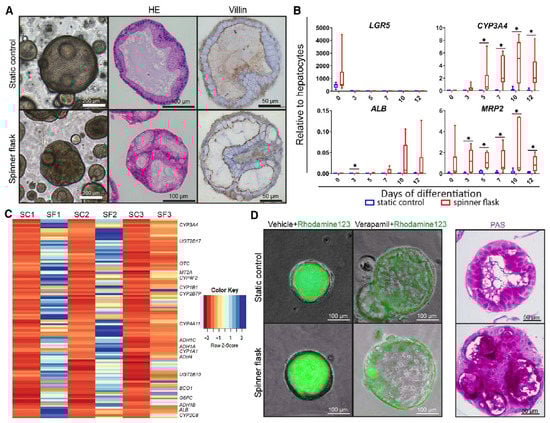 - Schneeberger, K.; Sánchez-Romero, N.; Ye, S.; van Steenbeek, F.G.; Oosterhoff, L.A.; Pla Palacin, I.; Chen, C.; van Wolferen, M.E.; van Tienderen, G.; Lieshout, R.; et al. Large-Scale Production of LGR5-Positive Bipotential Human Liver Stem Cells. Hepatology 2020, 72, 257. [Google Scholar] [CrossRef]