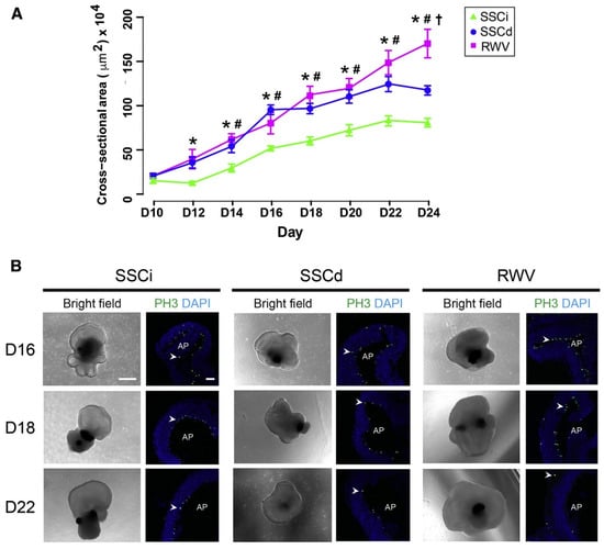 - Takahashi, J.; Mizutani, T.; Sugihara, H.Y.; Nagata, S.; Kato, S.; Hiraguri, Y.; Takeoka, S.; Tsuchiya, M.; Kuno, R.; Kakinuma, S.; et al. Suspension Culture in a Rotating Bioreactor for Efficient Generation of Human Intestinal Organoids. Cell Rep. Methods 2022, 2, 100337. [Google Scholar] [CrossRef]