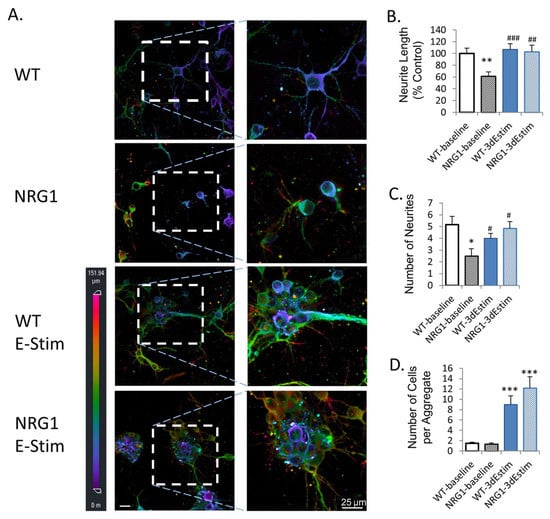 | Zhang et al. [89]. | Primary mouse cortical neurons. | Enhanced Neural Organoid. | 3D interdigitated electrodes coated with polypyrrole. | ES of organoids leads to enhanced neurite outgrowth and synaptogenesis and rescues the phenotype of NRG1-KO neurons. |
