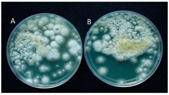Antifungal activity of H. pugilinus hemocyanin against A. niger on plates. (A) Control and (B) hemocyanin-treated.