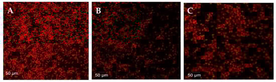 The biofilm formation was monitored via microtiter plate (MTP) assay using crystal violet dye and measured spectrophotometrically. By observing the biofilm architectural image under a light microscope (Supplementary Figure S4) and using CLSM-purified Hc (10–40 g/mL) after staining with CV and acridine orange, respectively, the percentage of biofilm biomass was determined (Supplementary Figure S5). When treated with purified Hc, bacterial biofilm formation was inhibited, contrary to the control glass pieces, which showed well-evolved biofilm growth of the tested bacteria. Treatment with purified Hc caused biofilm-forming bacteria to exhibit a collapsed biofilm architecture, suggesting effective biofilm inhibition. Using a staining technique that distinguishes between live and dead cells, the viability of human colon adenocarcinoma cells treated with H. pugilinus hemocyanin was based primarily on membrane integrity (Figure 5).