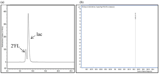 Human milk oligosaccharides (HMOs) are the third largest solid ingredient in human milk and have been proven to be crucial to stimulating healthy microbiota, avoiding infection, and improving immunity [1,2,3]. The presence of HMO is the major difference between breast milk and cow’s milk [4]. The most predominant component of HMOs is 2′-fucosyllactose (2′FL) [α-L-Fuc-(1-2)-β-D-Gal-(1-4)-D-Glc], which accounts for more than 30% of total HMOs [5]. 2′FL was approved as a nutritional ingredient in infant formula, dietary supplements, and medicinal meals by the European Union owing to its numerous health benefits [6].