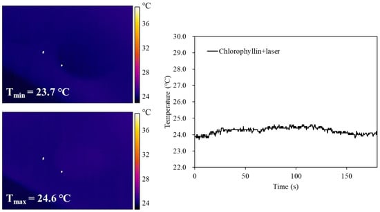To evaluate the mechanism of cell death under photodynamic reaction, ROS generation was investigated when cells were stimulated with a laser in the absence or presence of chlorophyllin. The result showed that cells with chlorophyllin-assisted PDT markedly induced ROS generation, whereas there was decreased ROS generation from 40 min after laser irradiation (Figure 4). Moreover, the photodynamic reaction affected cell morphology by inducing cell shrinkage and membrane blebbing formation (Video S1). In contrast, laser irradiation without chlorophyllin did not show any ROS generation or morphology change. In addition, we determined whether heat generated by chlorophyllin-assisted PDT affects the cells. As shown in the result, heat generated by laser irradiation was not efficient for inducing apoptosis (Figure 5).