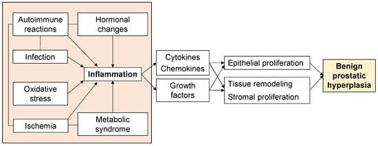 - De Nunzio, C.; Presicce, F.; Tubaro, A. Inflammatory mediators in the development and progression of benign prostatic hyperplasia. Nat. Rev. Urol. 2016, 13, 613–626. [Google Scholar] [CrossRef]